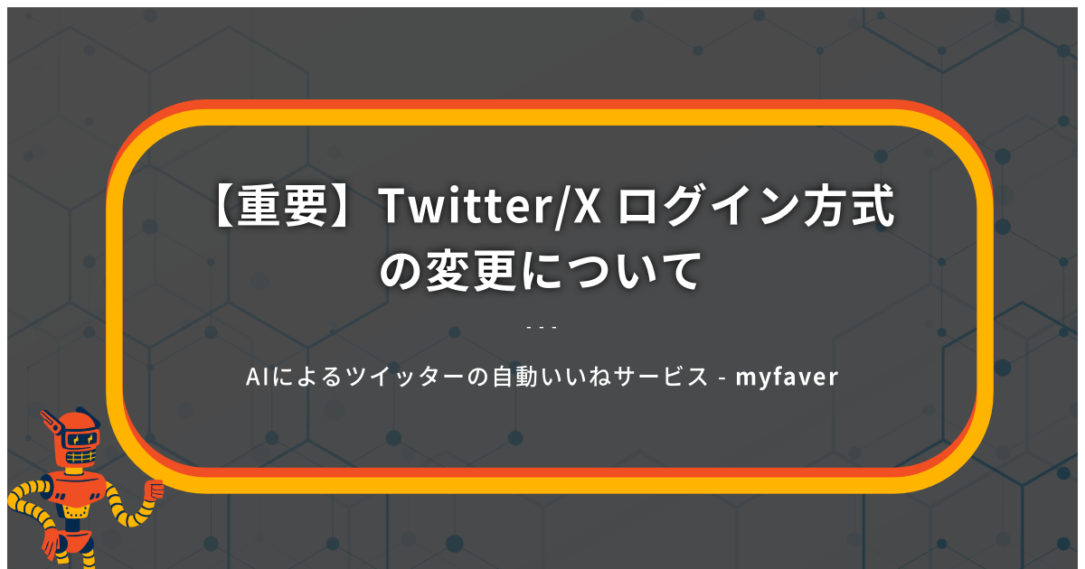 myfaver の Twitter/X ログイン方式を、従来のユーザー名・パスワード方式から Cookie ベース認証へ移行いたしました。